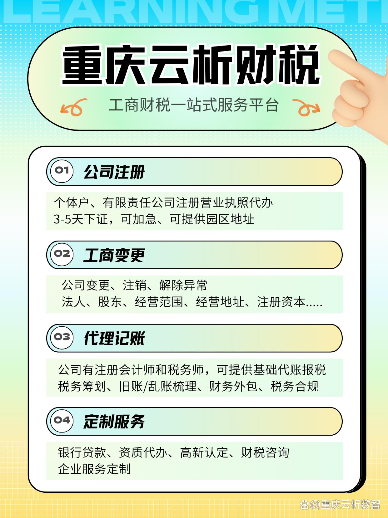专业提示:云析财税拥有3-5天快速下证通道,工商注册代办团队熟悉全国各区政策差异,可规避材料反复修改的常见问题。